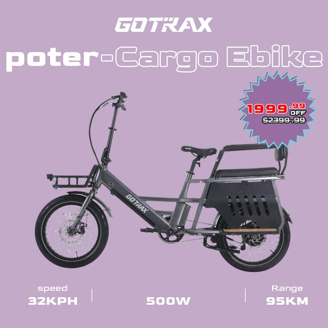 Introducing the Porter—Free cargo accessories for a limited time: integrated rear rack, front rack, foot Pedal Easily carry everyday essentials: office supplies, groceries, and work gear, plus take the kids camping on the weekends.With a 330lbs weight capacity and smart battery technology, the Porter redefines urban mobility - smarter, greener, and more satisfying for life.